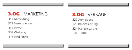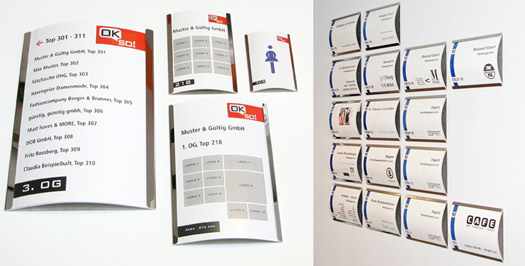 Tritt man aus dem Lift oder steht man am Treppenende, muss einfach und schnell erkennbar sein, wo ein Geschäftspartner sein Top hat!