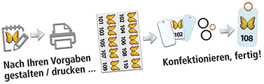 inklusive mikroperforierter, neutraler Druckbögen im A4-Format (20 Kärtchen pro Bogen).