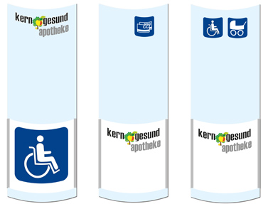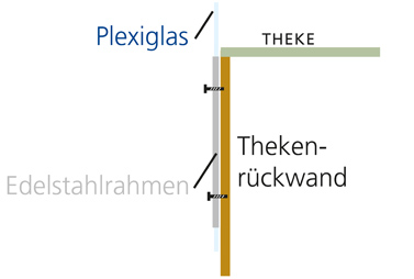 Abstandhalter vereinfachen die paßgenaue, vertikale Montage der Edelstahl-Systemplatte in die eine bedruckbare Plexiglasscheibe mit einem Handgriff eingespannt wird.